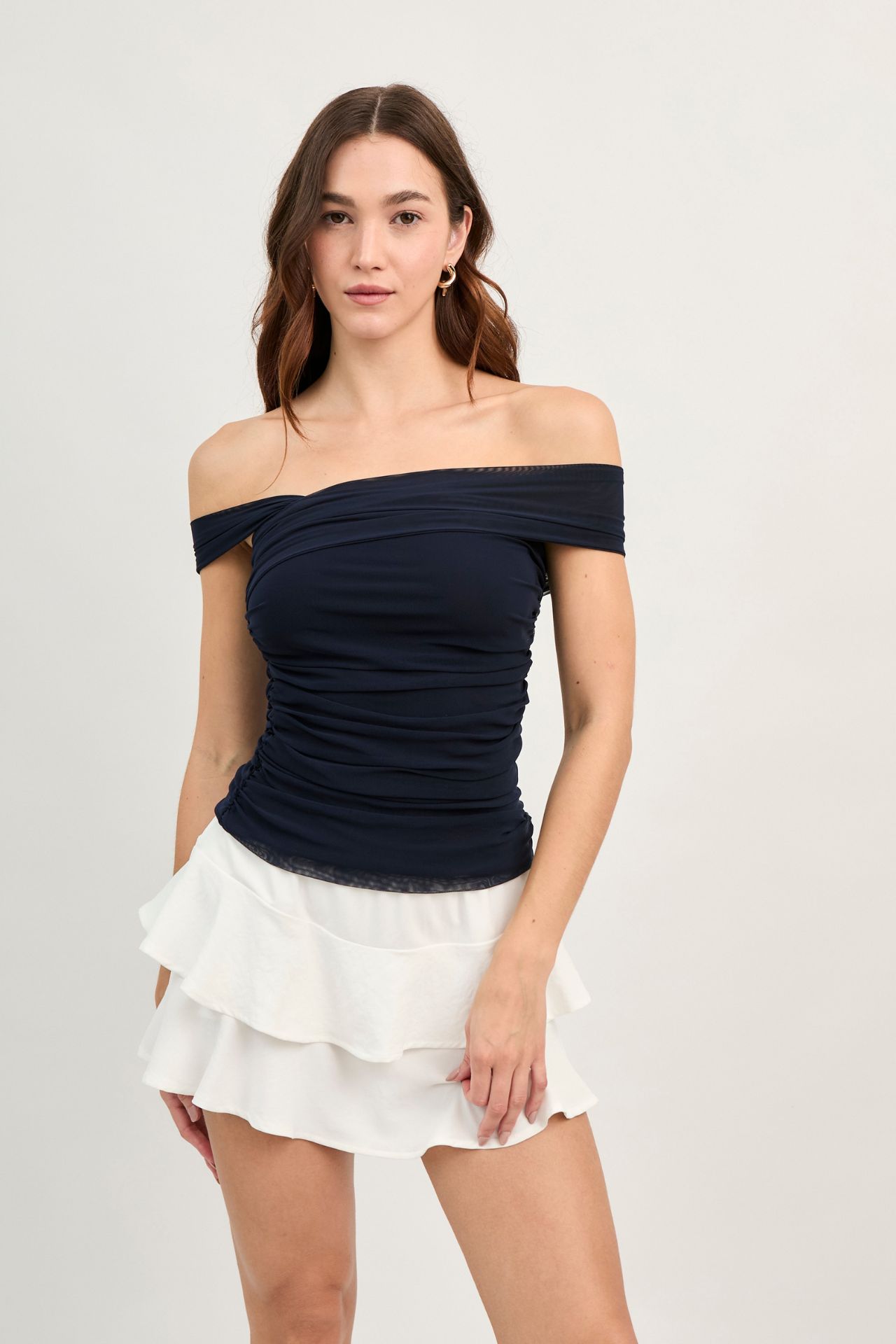 Confeccionado con una suave mezcla de algodón y poliéster. Su tela ofrece una ligera elasticidad y flexibilidad, adaptándose con gracia a tus movimientos sin sentirse rígida ni ajustada. Gracias a su textura ligera y respirable, es ideal para usar todo el día en cualquier estación.
