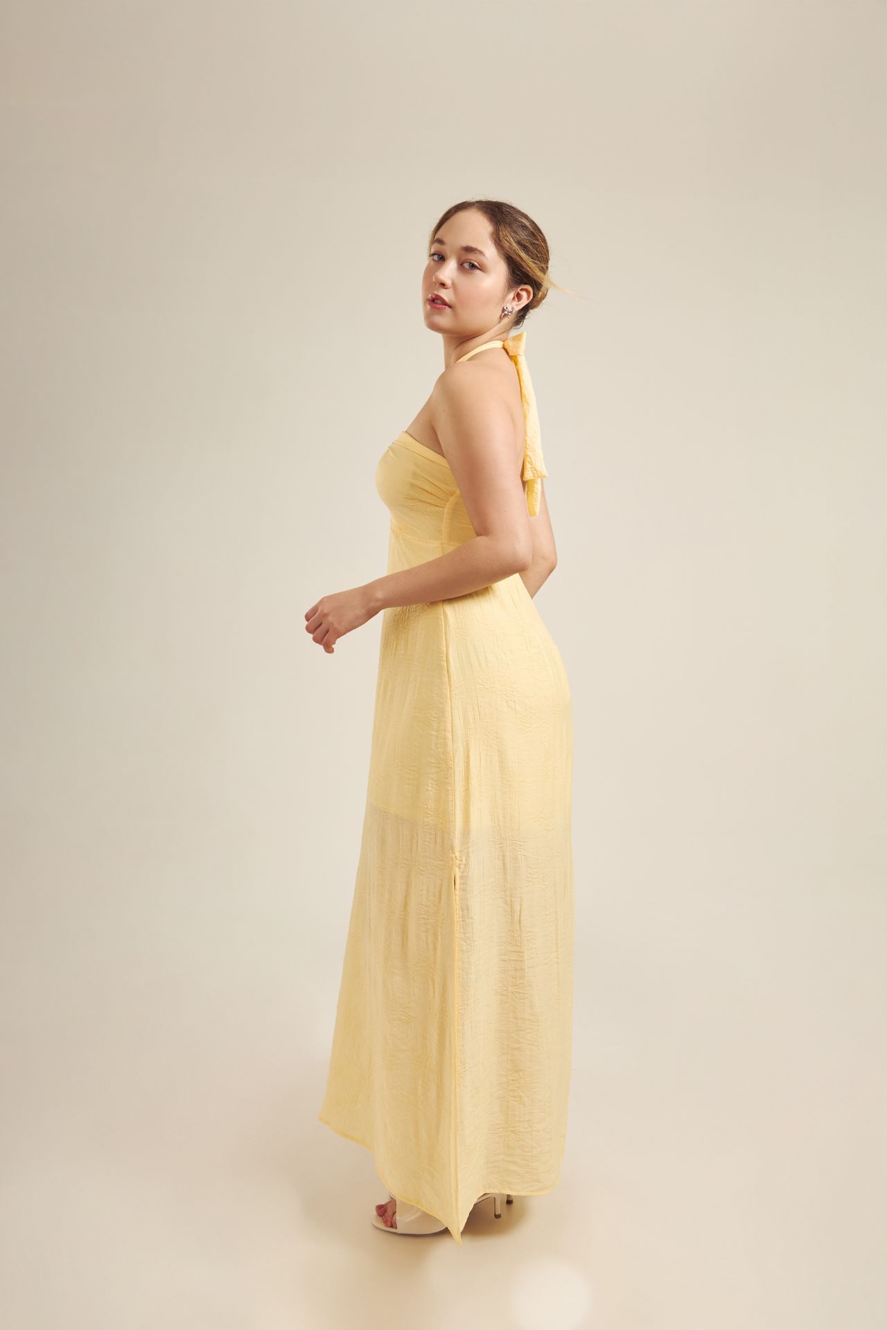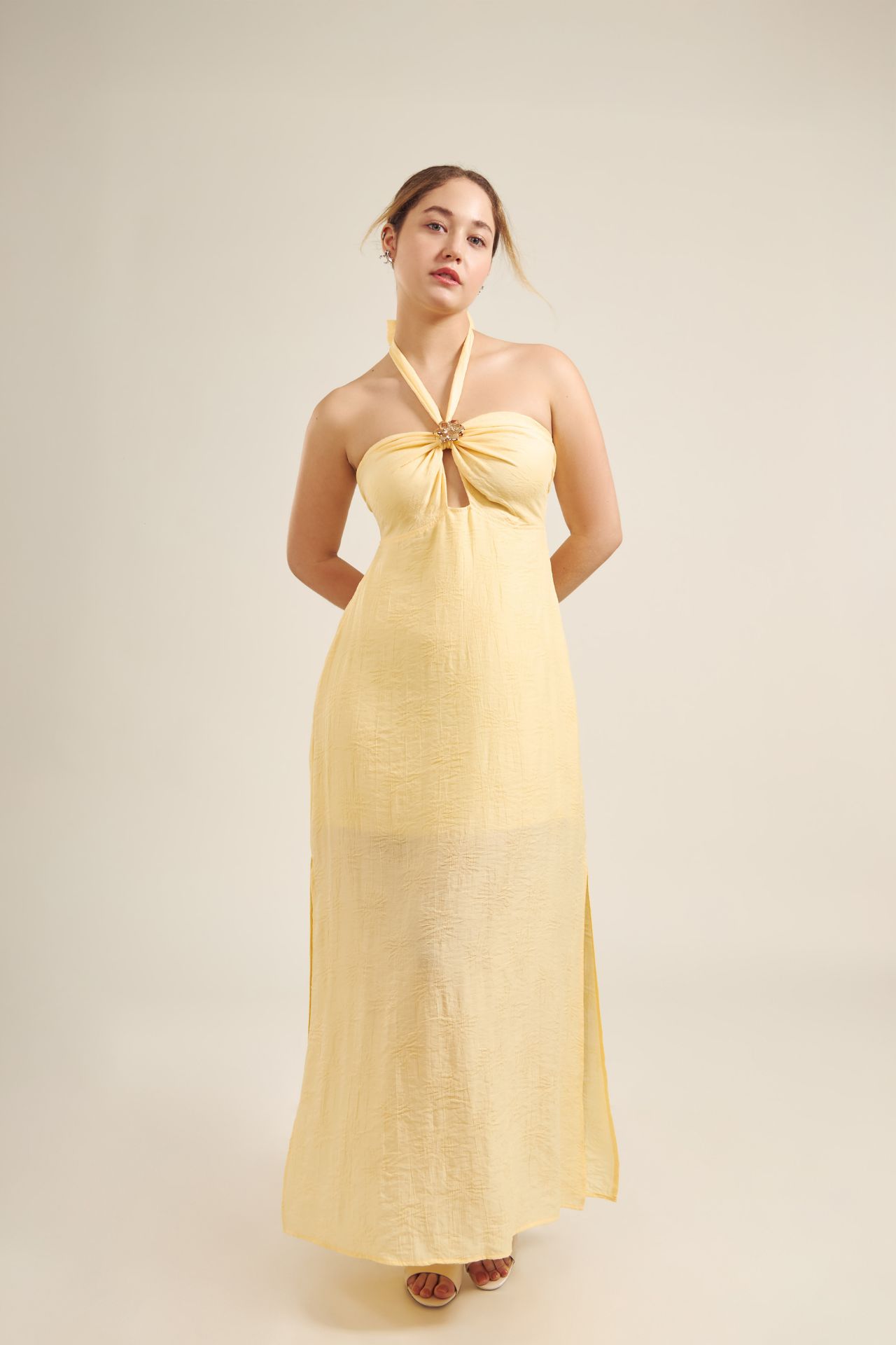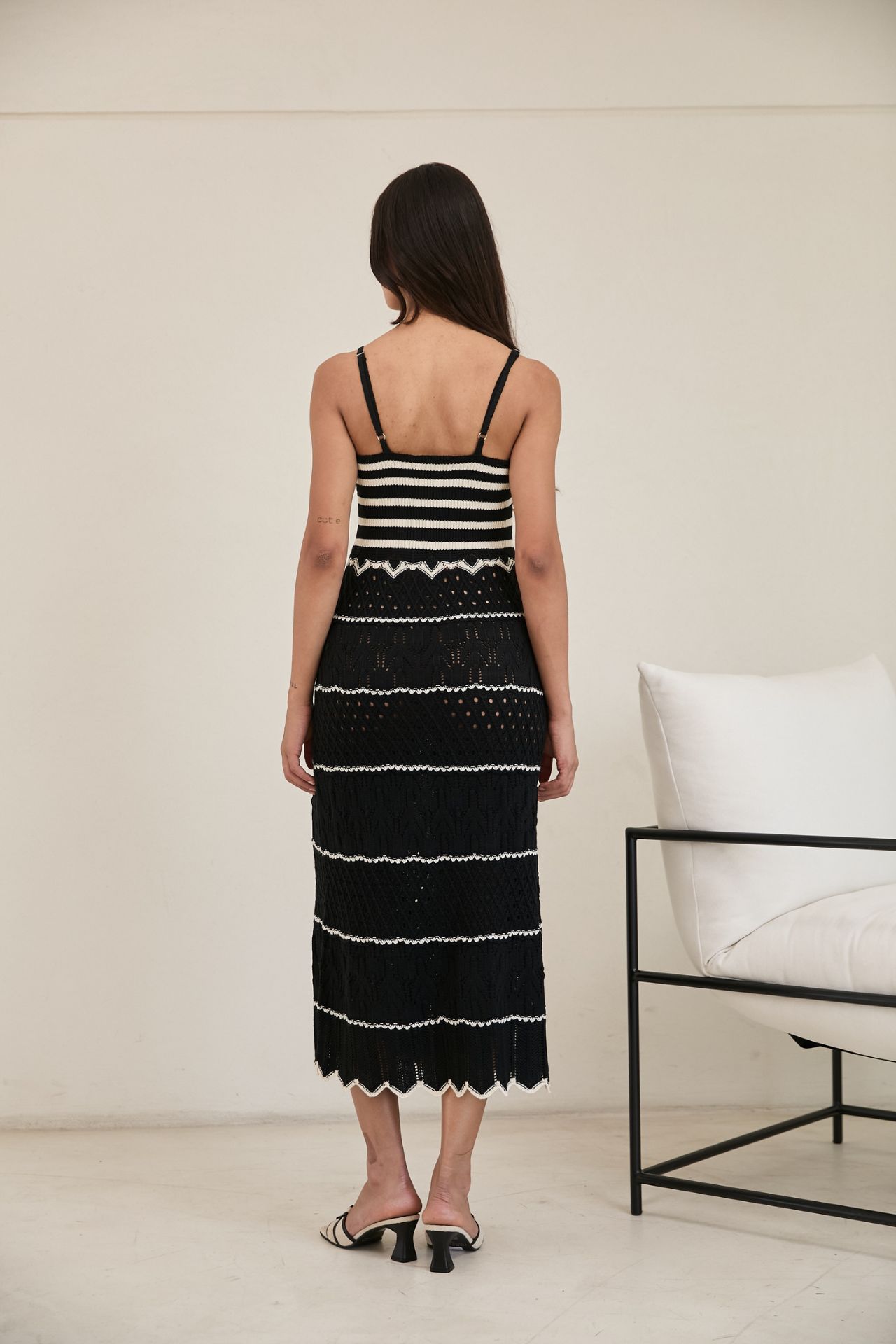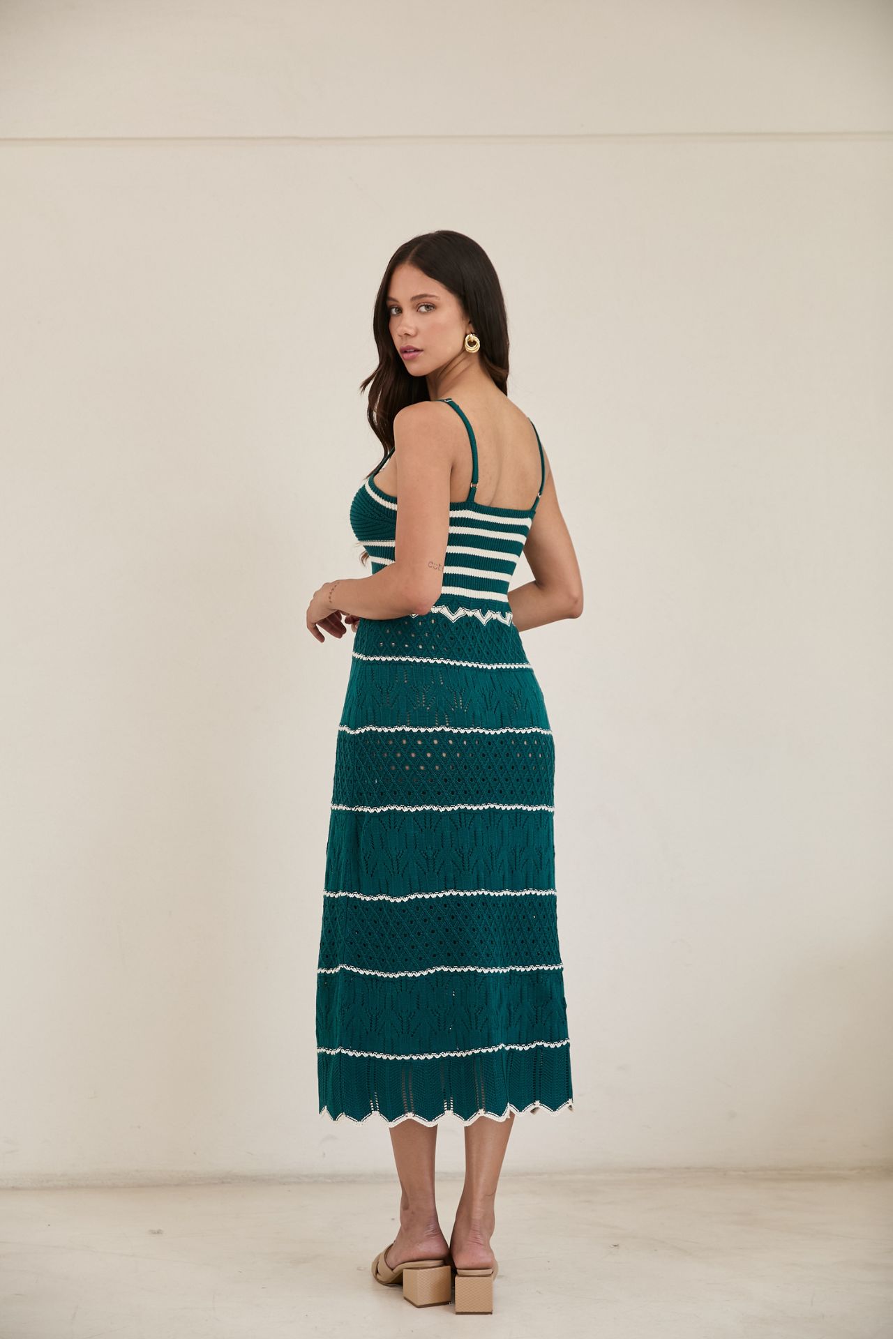 Este vestido es perfecto tanto para salidas casuales como para noches relajadas. Para conservar su calidad, se recomienda lavarlo en ciclo delicado con agua fría. Al secarlo, utiliza aire frío o déjalo secar al natural para mantener su forma y suavidad originales.
